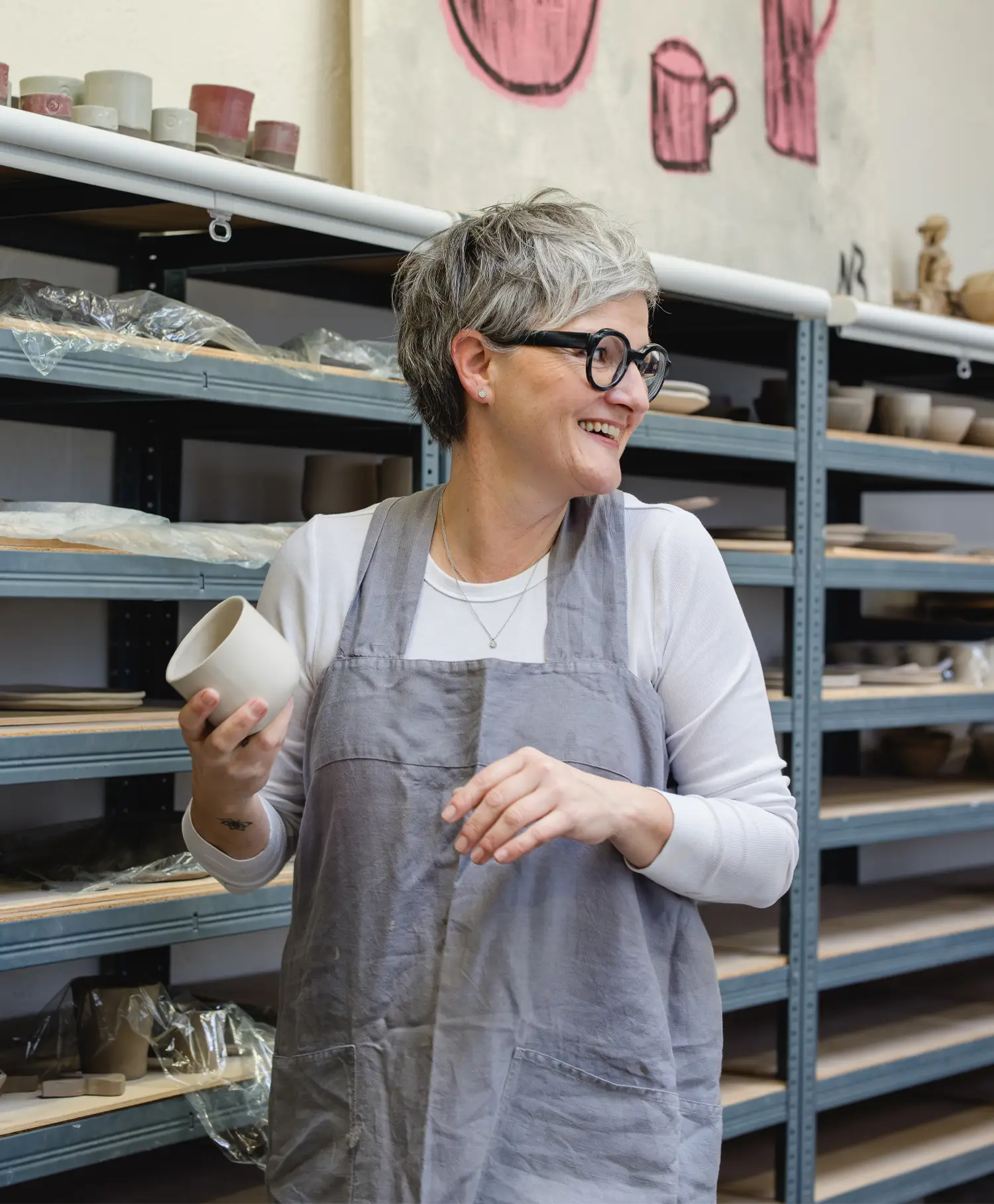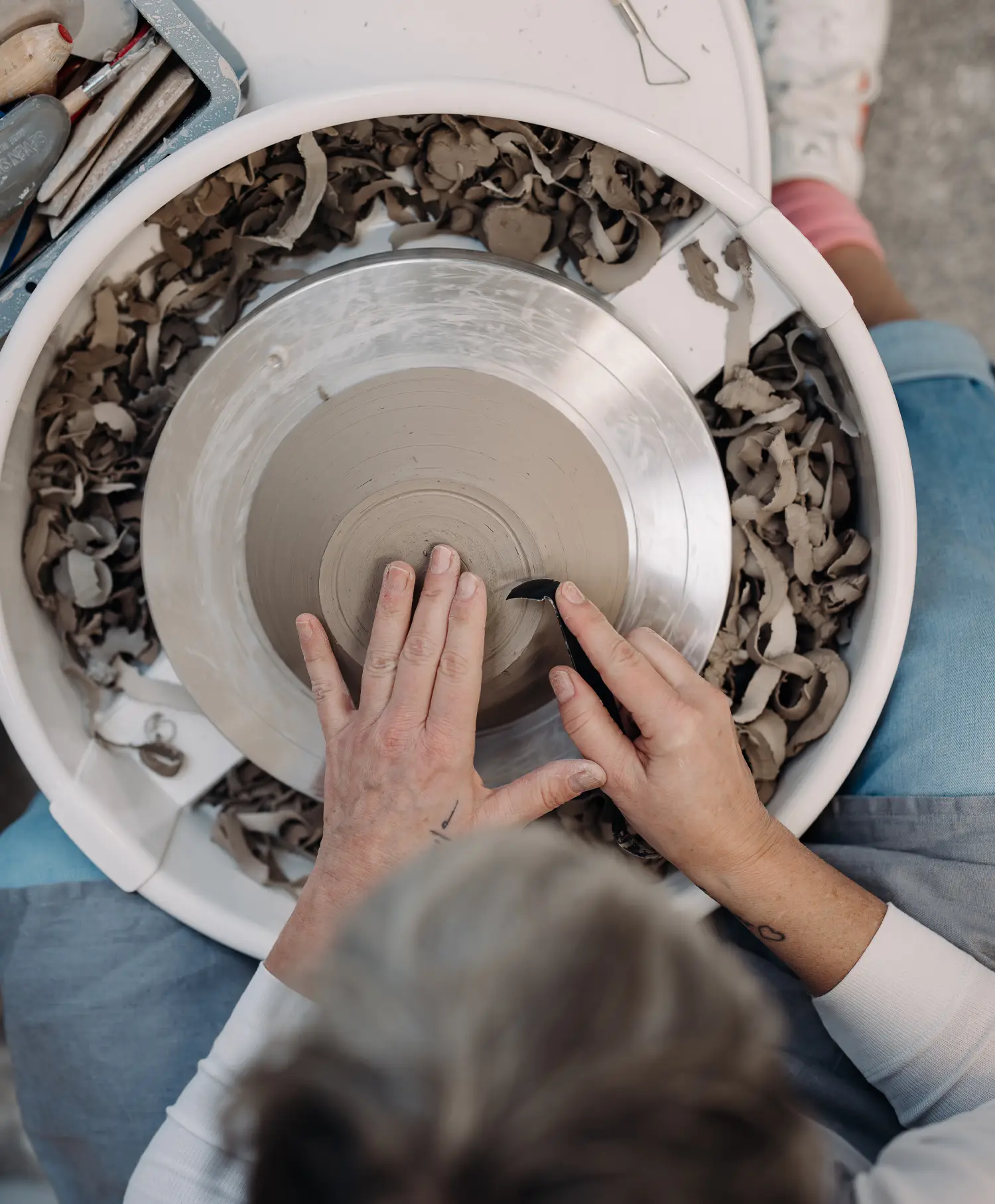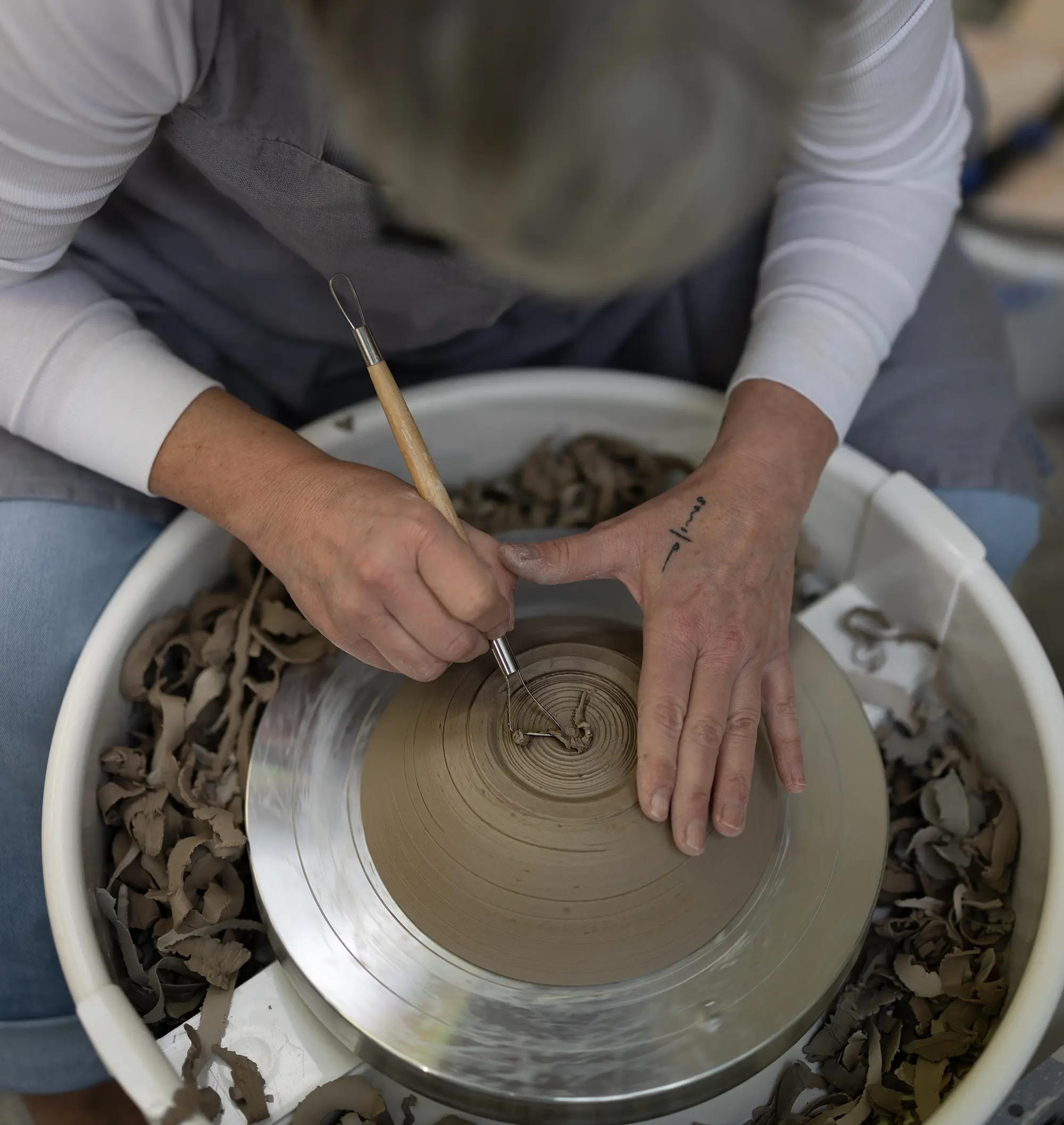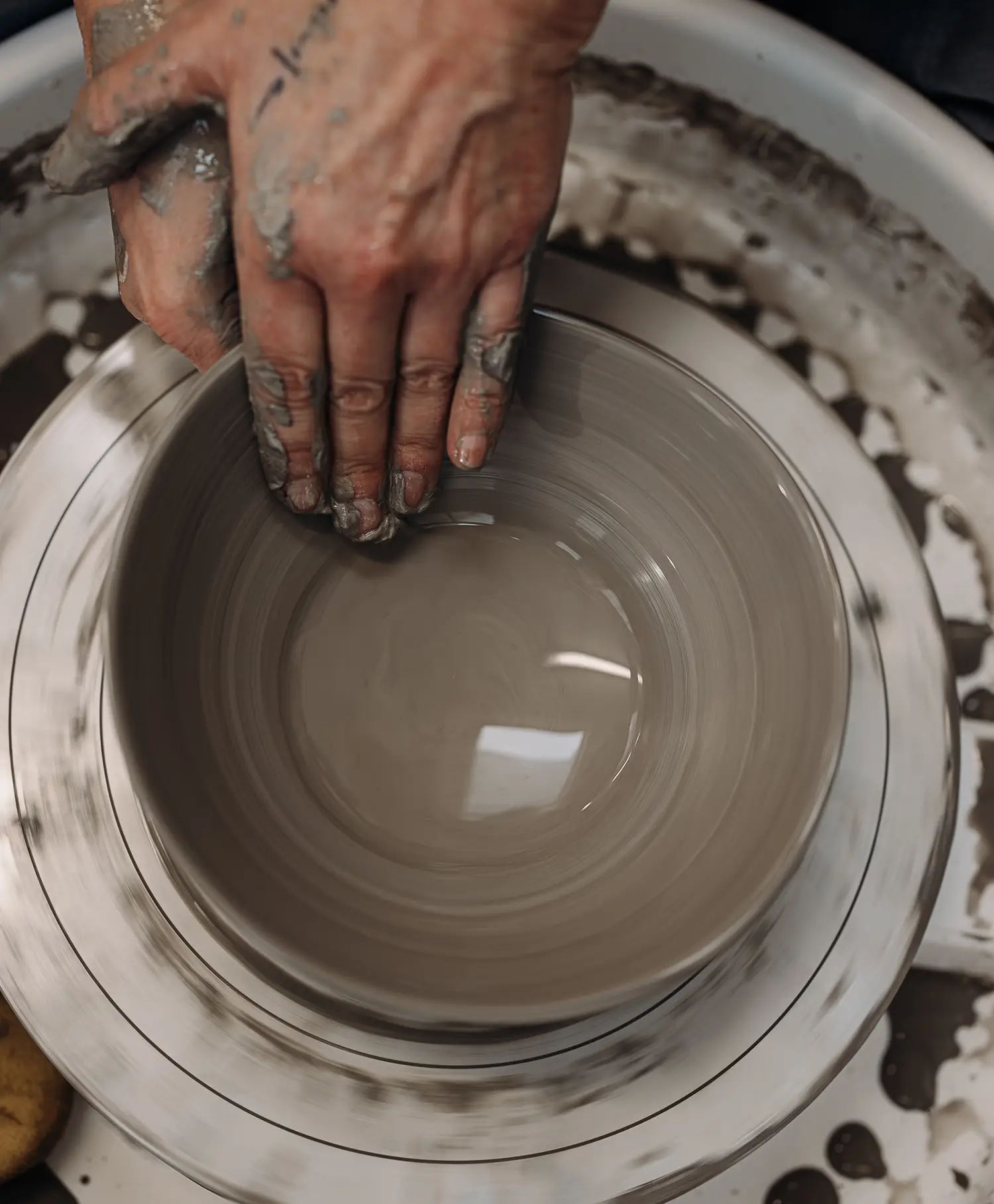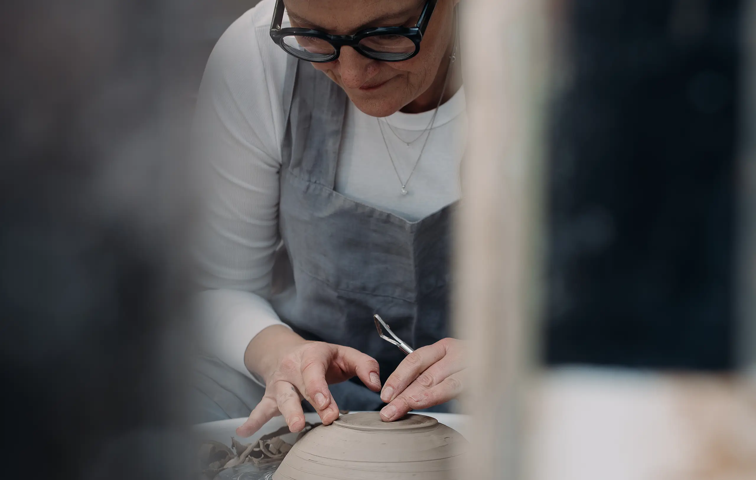 Die Aufmerksamkeit sammelt sich. Konzentriert sich auf ein kühles Stück Ton. Noch gibt es nur eine Idee – von dem, was im Begriff ist, Gestalt anzunehmen. Und zwei Hände, die diese Ahnung aufgreifen, das vertraute Material erspüren, es kneten, walzen, drücken, glätten. Ihm Form geben mit Begeisterung, mit Fingerspitzengefühl, wohldosiert. Mit Keramikliebe, die in jedem Stück lebt.